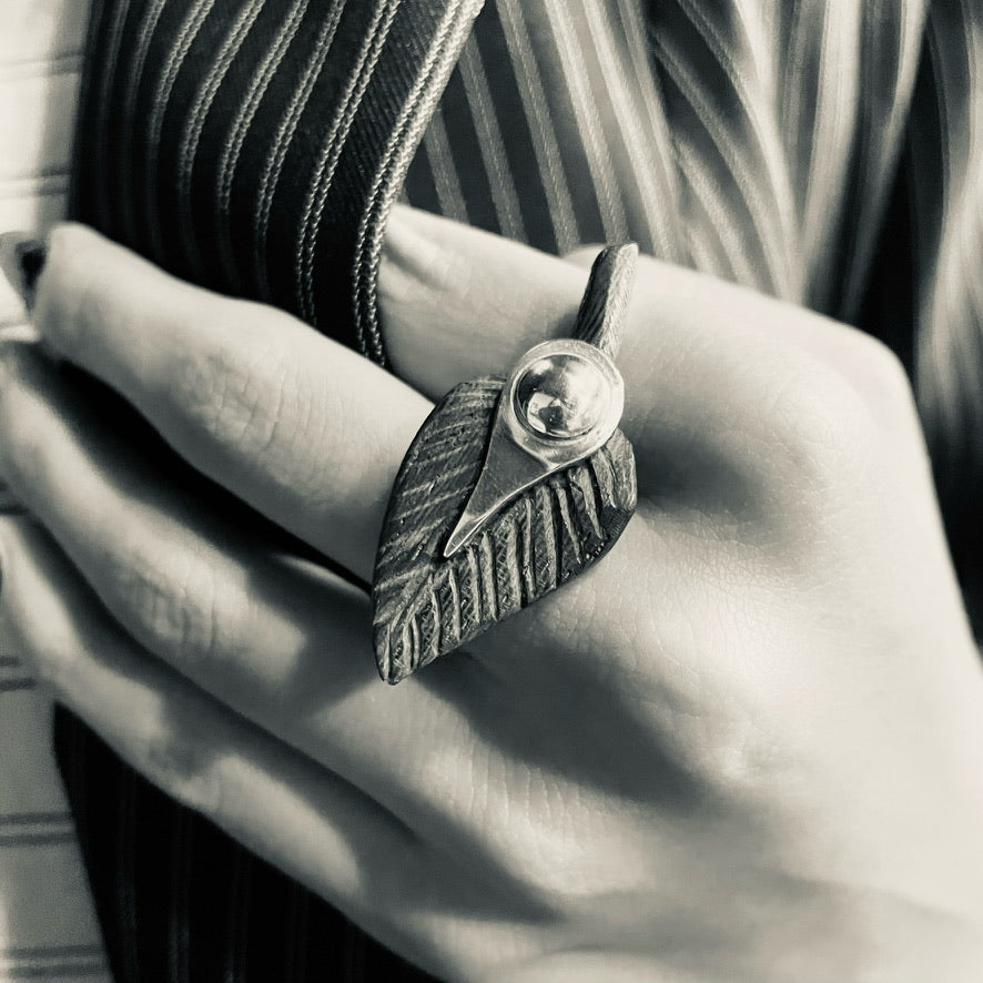 Cada pieza se realiza a mano, utilizando plata mexicana, madera recuperada, piedra y esmalte.